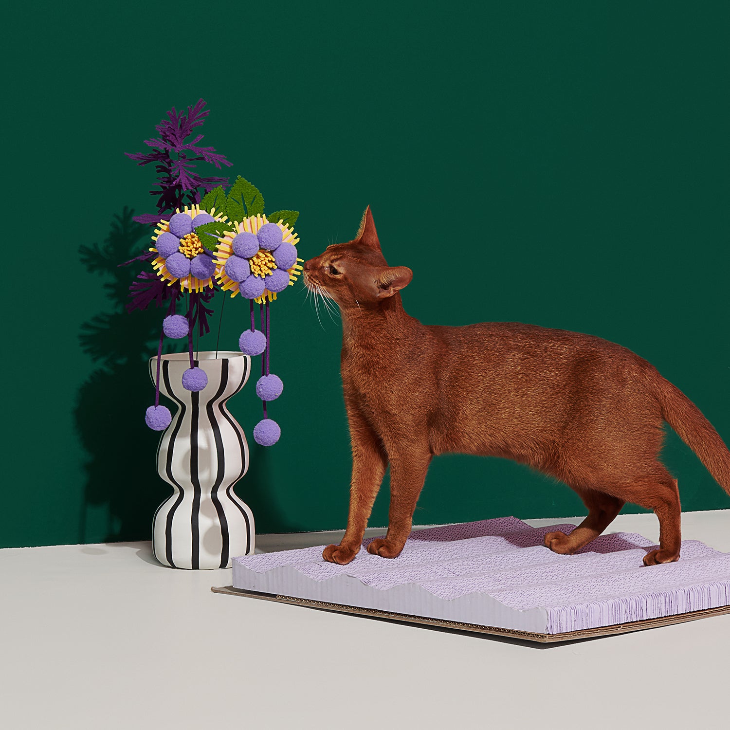 Experience the different textures and sensorial stimulation with these 6 different teasers handmade with various materials and elements that intrigue your cat like the ringing bells, soft felts, elastic balls, or the glittering silver leaves. They will also be a decorative addition to your living room when your cat is not playing with them.