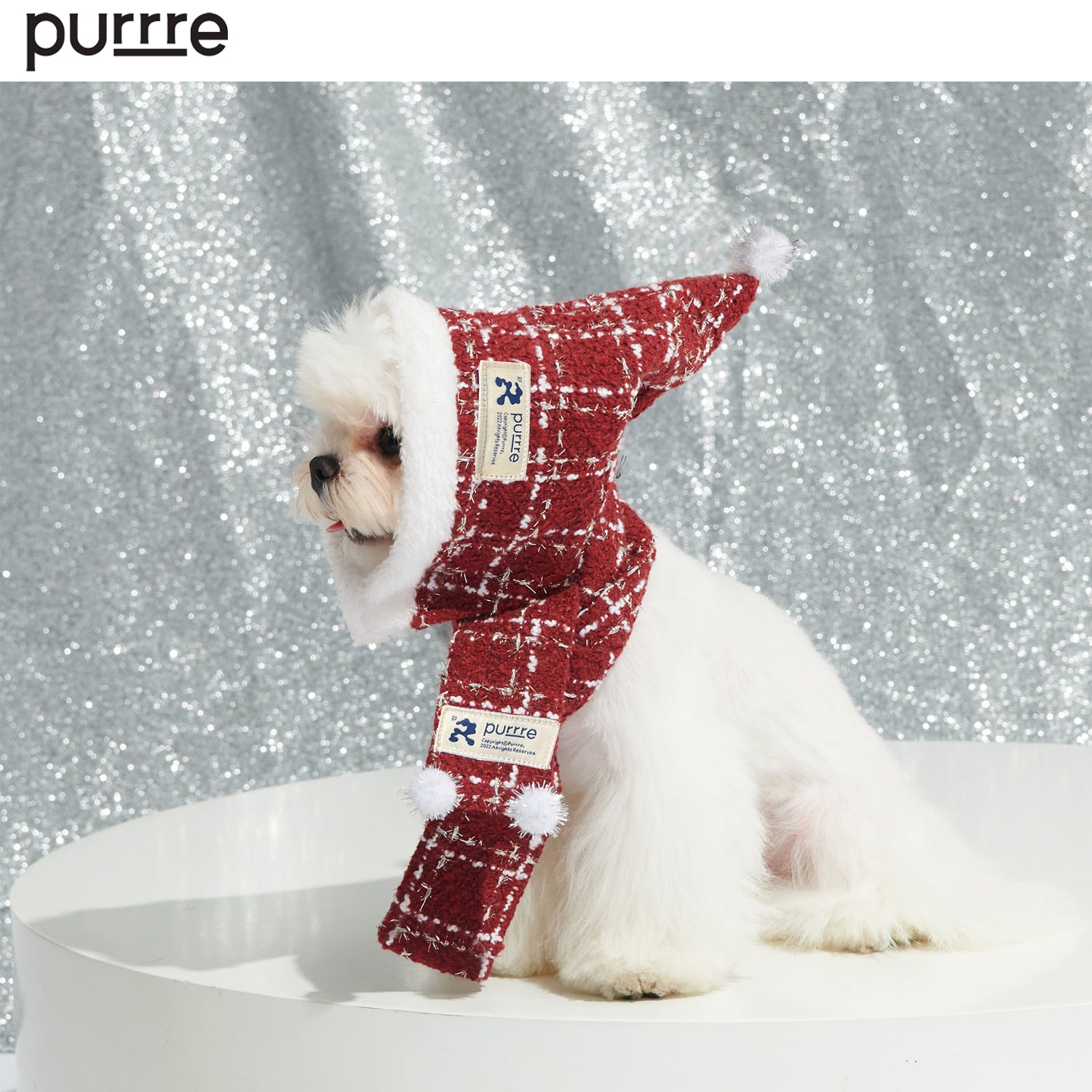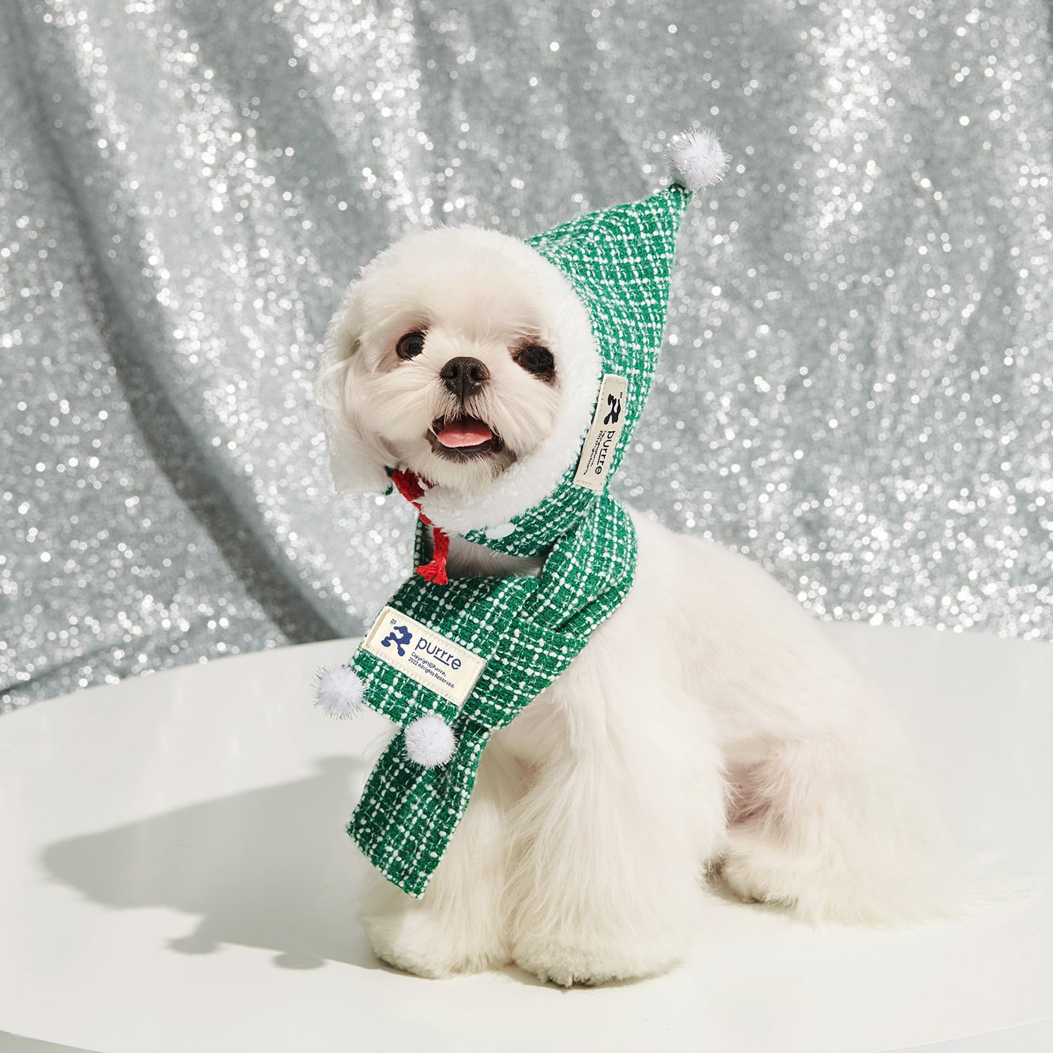 M - Hat Length 16 cm, Hat Circircumference 32 cm, Scarf Length 60 cm, Scarf Width 5 cm, suits for Poodle, Westie, Bichon Frise;